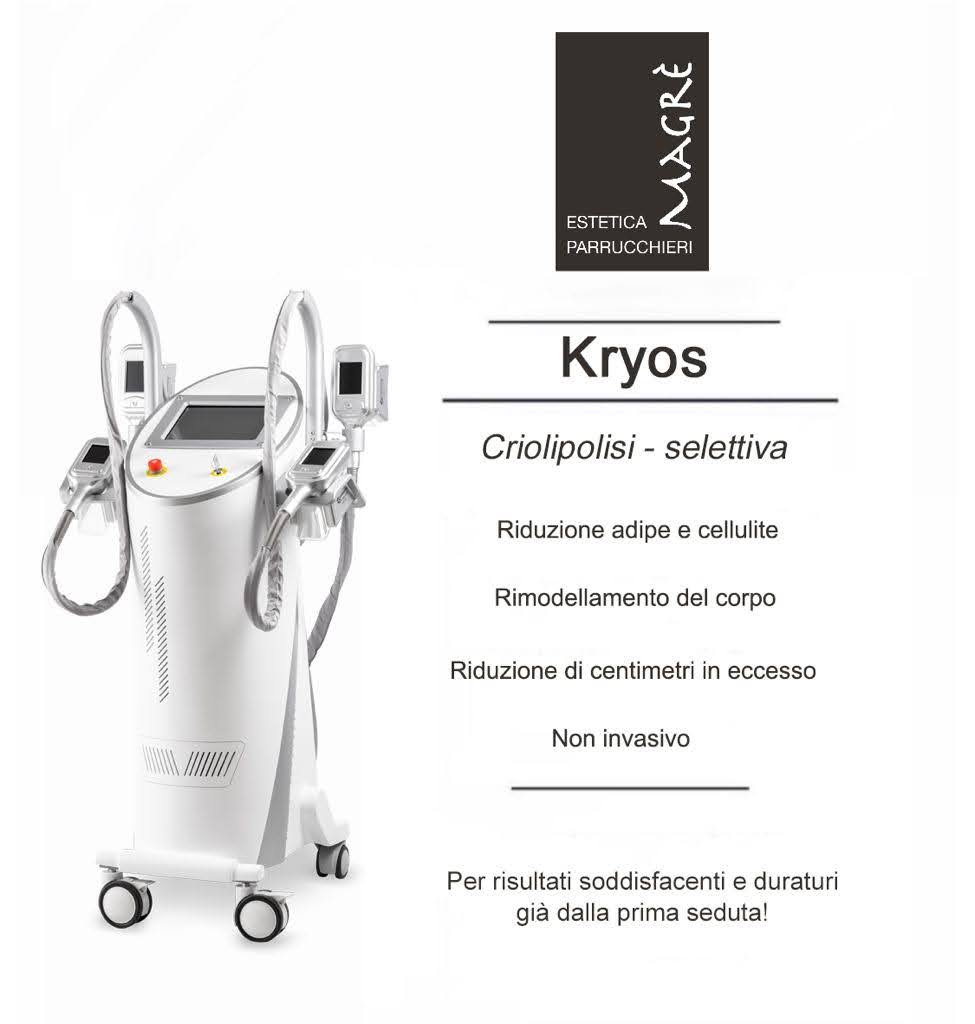 - Criolipolisi con Kryos ( riduzione di adipe e cellulite, rimodellamento del corpo, riduzione di centimetri in eccesso).